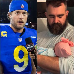 Matthew Stafford has some words of wisdom for Jason Kelce as he gets ready to welcome his fourth daughter.