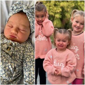 In the adorable snapshot, each girl donned matching sweaters with “big sister” embroidered on them.