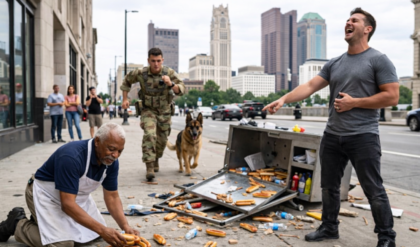 The dog lay in the rain as if he had already been abandoned by more than people. Cars hissed past the curb, sending gray water into the gutter. Shoppers hurried beneath umbrellas, eyes forward, shoulders tucked against the wind….