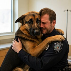 By the time Officer Claire Holloway unclipped Ronan’s lead, the whole farm had gone still. Rain moved through the floodlights in slanting silver wires. Patrol cars ringed the front pasture. Red and blue washed over the old barn, the leaning…