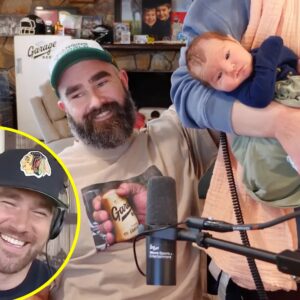 “Yes, I want to see my new niece, Jason! You only sent one picture,” Travis tells Jason as the brothers tape the podcast from different locations. “You didn’t even tell me what name you picked yet.”