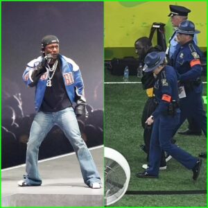 Kendrick Lamar‘s Super Bowl halftime performance was interrupted by a protester who stormed the stadium with a Palestinian and Sudanese flag.