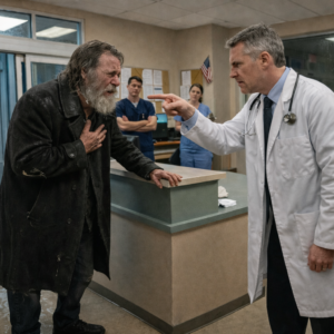 At the ER, a Homeless Man Staggered In Begging for a Doctor, and the Staff Treated Him Like He Was Looking for a Bed, Not Help. After a Doctor Told Him, “This Is a Hospital, Not a Shelter,” the Whole Waiting Room Went Quiet and Looked Away. But They Had No Idea That One Phone Call Was About to Change Everything They Thought They Knew About Him.