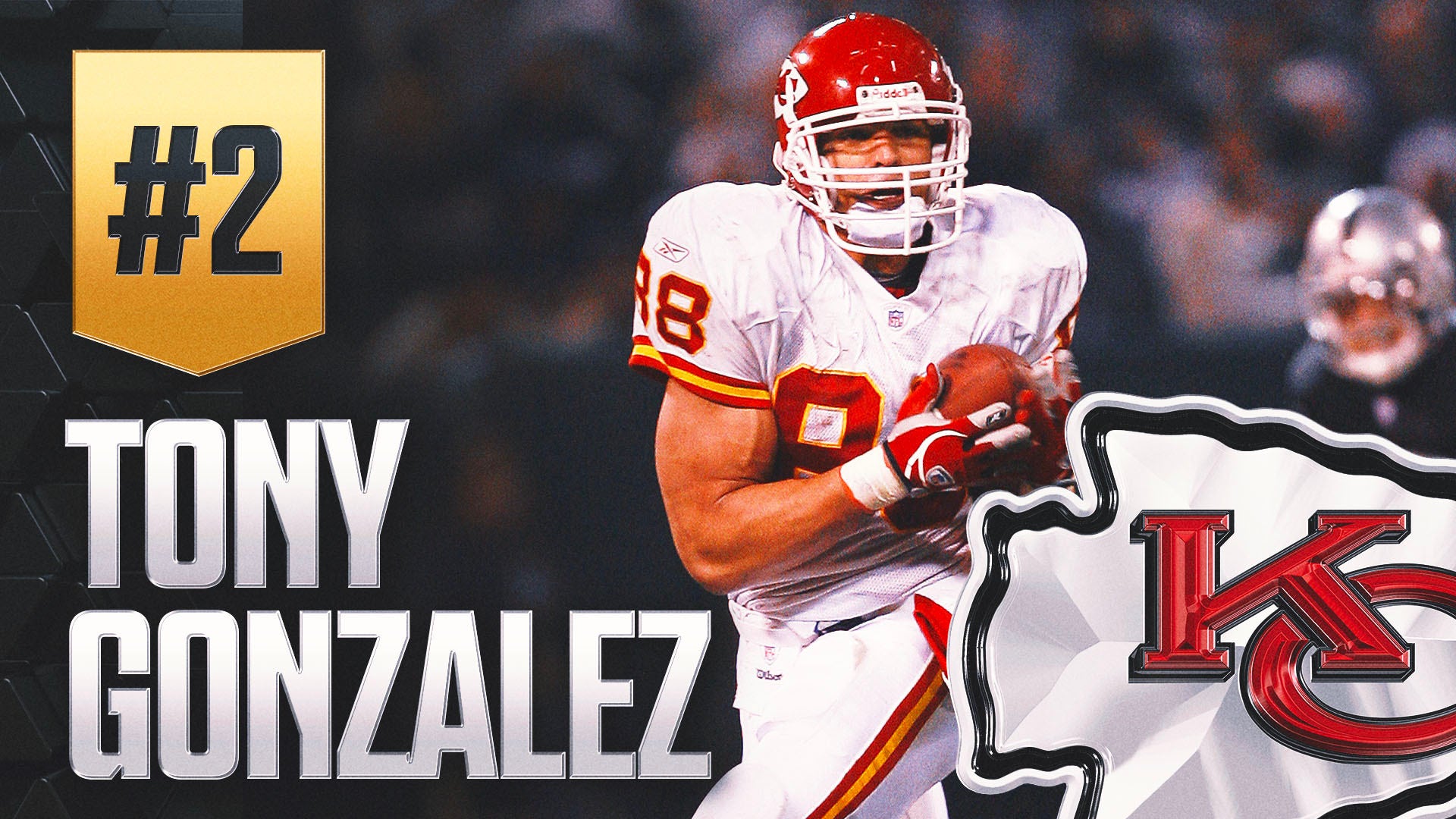 Gonzalez has a case for being the best tight end in NFL history. A six-time All-Pro and 14-time Pro Bowler, Gonzalez led the league with 102 receptions in 2004 and recorded 1,000-plus receiving yards in four seasons and double-digit touchdowns in three seasons. Gonzalez is second in Chiefs history with 916 receptions, 10,940 receiving yards and 76 receiving touchdowns. Furthermore, Gonzalez, who spent the last five seasons of his career with the Atlanta Falcons, is third in NFL history with 1,325 receptions, sixth with 15,127 receiving yards and eighth with 111 receiving touchdowns.